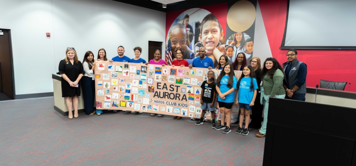 El mensaje nacional del Boys & Girls Club, “America Needs Club Kids” (América Necesita a los Niños de los Clubes), ahora tiene una fuerte presencia en East Aurora, donde cada estudiante de primaria tiene acceso a programas que apoyan lo académico, el desarrollo social-emocional y el enriquecimiento personal.